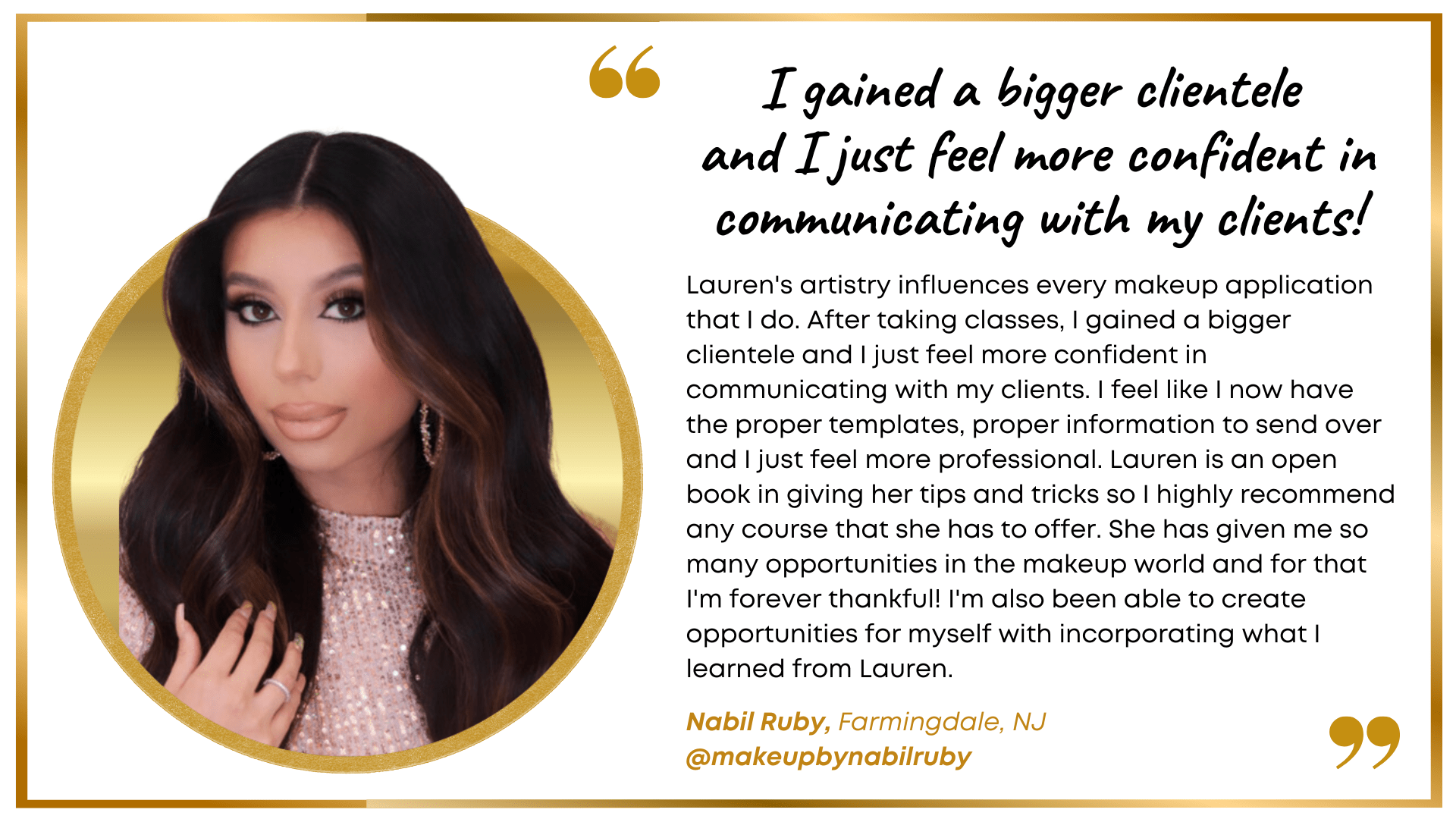 You can certainly count on this course helping you level up as an artist. You can count on your artistry improving from the Elite MUA Knowledge module. The same goes for Module 2 where you’ll watch a full professional recording of me applying my signature look. That said, what makes this course so special are the business secrets and resources you simply won’t learn anywhere else.